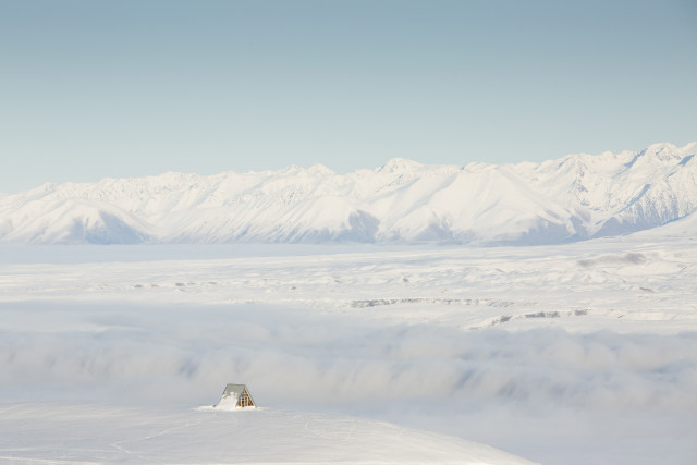 Snow blankets the whole countryside, Roundhill ski area & Lake Tekapo.