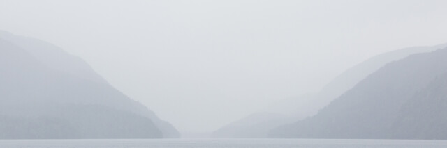 Misty rain falls amongst the fiords.