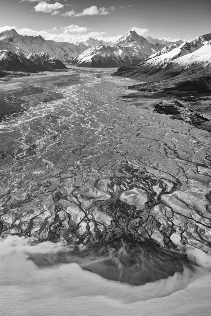 Tasman River with its braided riverlets as it reaches Lake Pukaki.